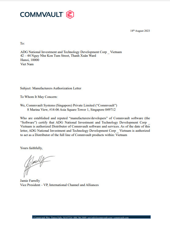 CHỨNG NHẬN PHÂN PHỐI SẢN PHẨM COMMVAULT: