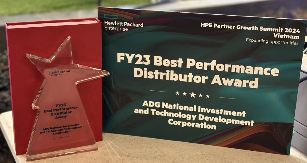 Phan Thiết, ngày 12 tháng 1 năm 2024 – Tại sự kiện HPE Partner Growth Summit 2024 Vietnam, ADG Distribution, một trong những đối tác hàng đầu của Hewlett Packard Enterprise (HPE), đã vinh dự nhận giải thưởng “FY23 Best Performance Distributor Award” (Giải thưởng dành cho Nhà Phân Phối Xuất Sắc Nhất FY23) từ HPE, đánh dấu thêm một cột mốc quan trọng trong hành trình là đối tác chiến lược của HPE tại Việt Nam.