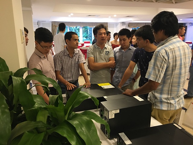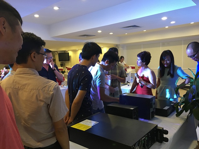 Không khí sôi nổi tại hội thảo, các khách hàng tham quan test hàng demo