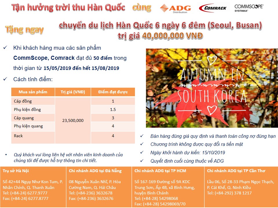 Kính mời Quý khách hàng cùng tận hưởng trời thu Hàn Quốc với ADG, CommScope & Comrack.