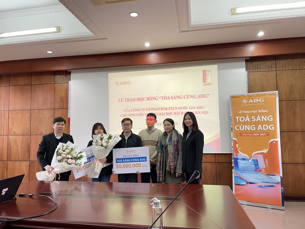 Sáng ngày 18/12, Công ty ADG phối hợp cùng Trường Đại học Bách Khoa HN tổ chức lễ trao học bổng “Toả sáng cũng ADG” cho 2 em sinh viên có hoàn cảnh khó khăn, đạt thành tích xuất sắc trong học tập của Trường năm học 2020-2021.
