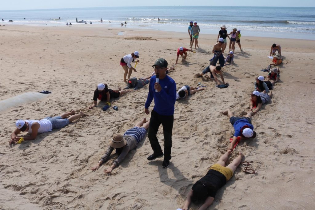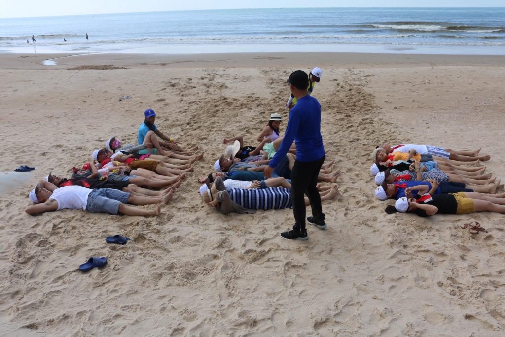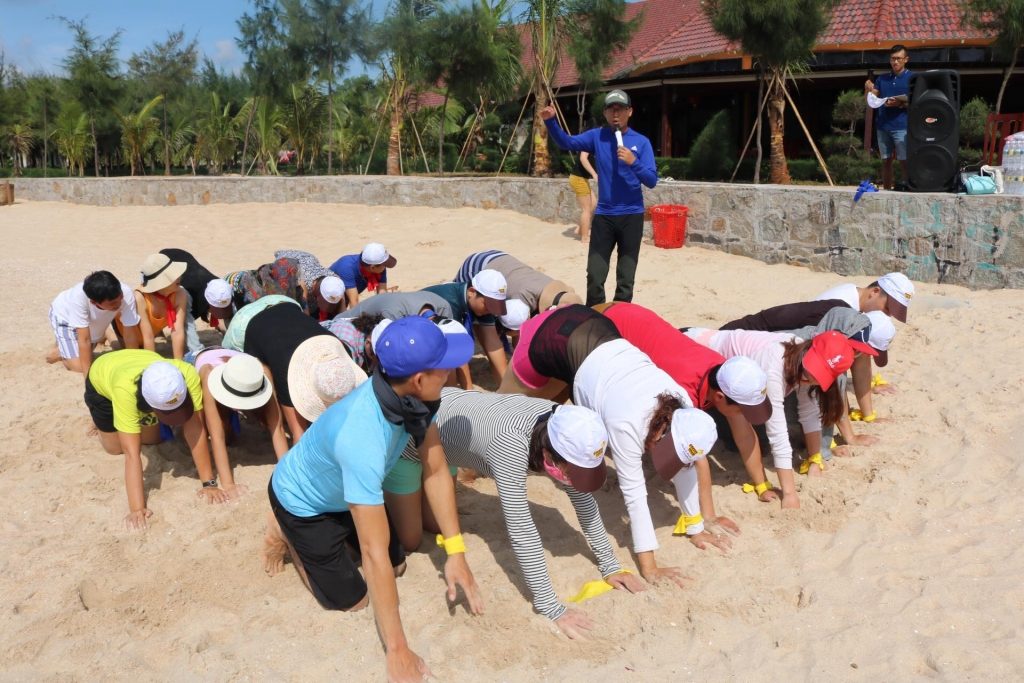 Sáng ngày 9/8, sau khi dùng điểm tâm buffet sáng, mọi người di chuyển ra Bãi Biển tham gia chương trình Team buiding vận động Biển với các trò chơi đồng đội vui nhộn mang tính gắn kết tinh thần đoàn kết CB-CNV.