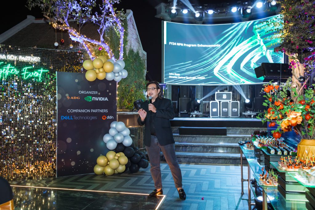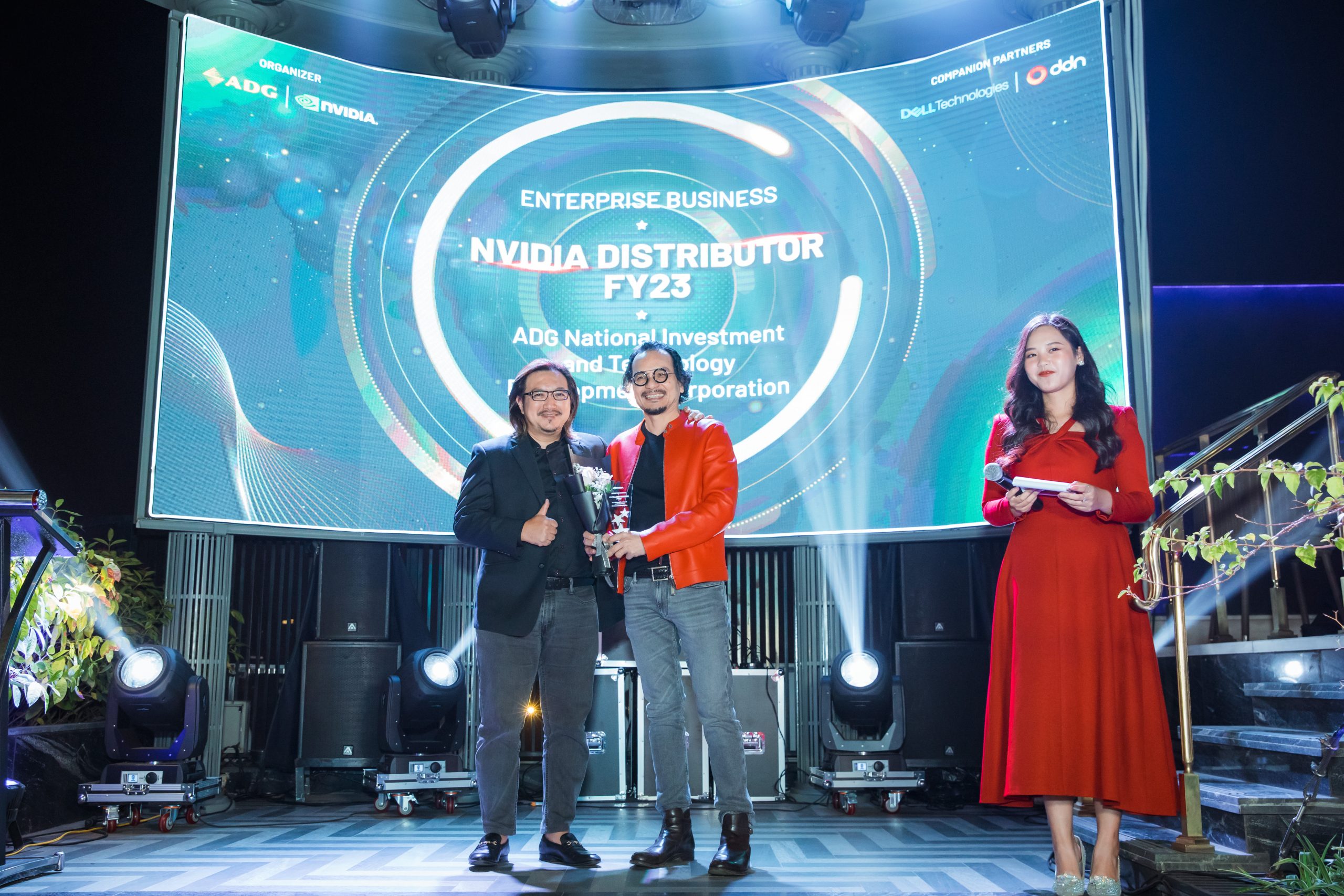 Hạng mục 1: NVIDIA Distributor FY23 Enterprise Business + Top Distributor FY23 – Vietnam được trao cho Nhà Phân phối ADG National Investment and Technology Development Corporation. Trong năm 2022, ADG Distribution là nhà phân phối có thành tích xuất sắc nhất tại thị trường Việt Nam. ADG cũng là nhà phân phối có các hoạt động marketing, chăm sóc đối tác và mở rộng kênh năng động nhất. Ông Vũ Minh Tuấn – chủ tịch HĐQT, đại diện công ty ADG lên nhận giải thưởng.