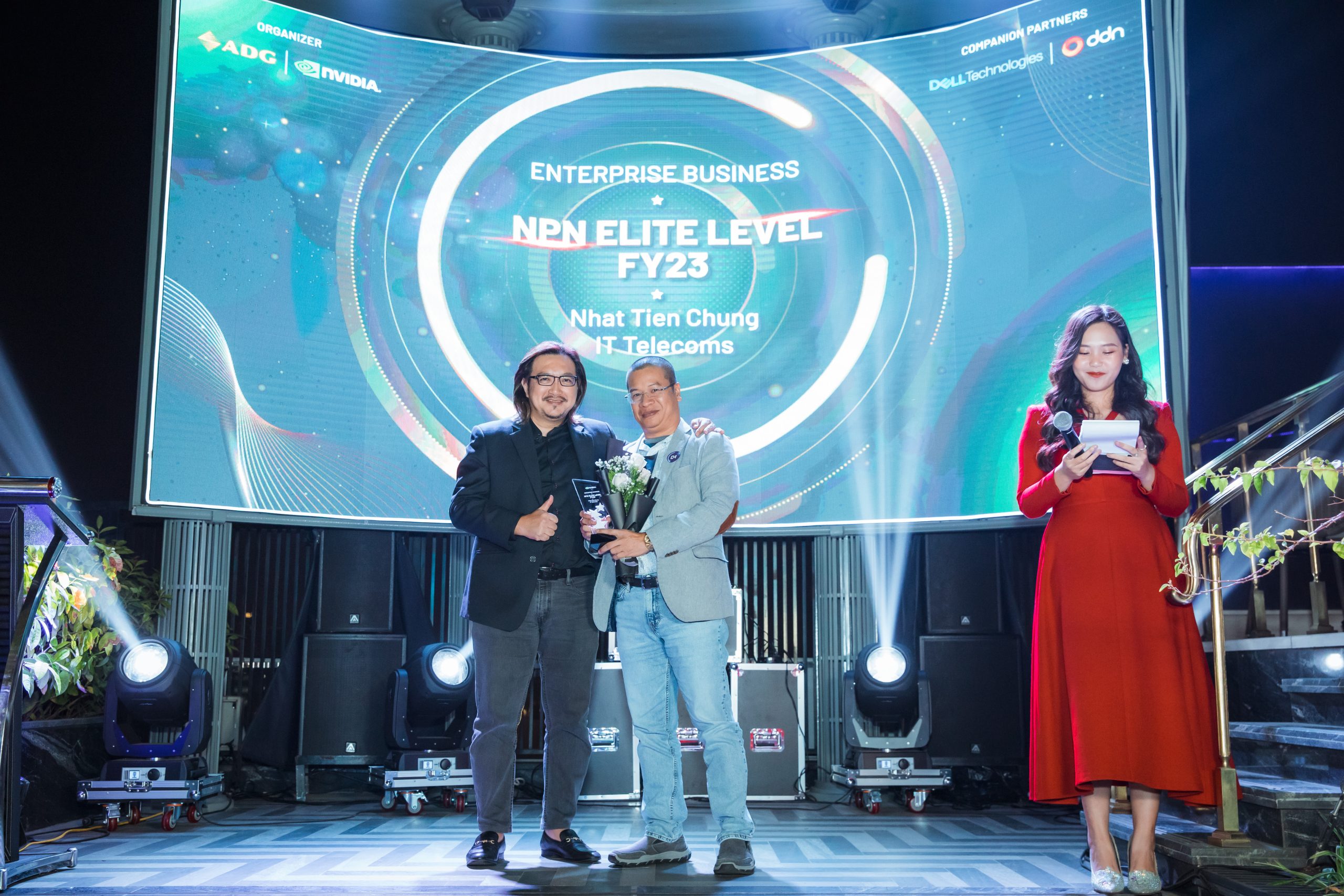 Hạng mục 2: NPN Elite Level FY23 Enterprise Business gọi tên Đối tác Nhat Tien Chung IT Telecoms. Đây chính là đối tác xuất sắc nhất Việt Nam trong danh sách của NVIDIA Partner Network (NPN) cho việc thiết kế giải pháp, cung cấp các dịch vụ và sản phẩm của NVIDIA. Ông Hồ Vi Đại Nghĩa – Tổng giám đốc Nhat Tien Chung Telecoms lên sân khấu nhận giải thưởng này. Ngoài ra, NTC cũng nhận thêm 2 giải thưởng danh giá khác: Top NPN FY23 – Vietnam vàTop Compute DGX FY23 – Vietnam.