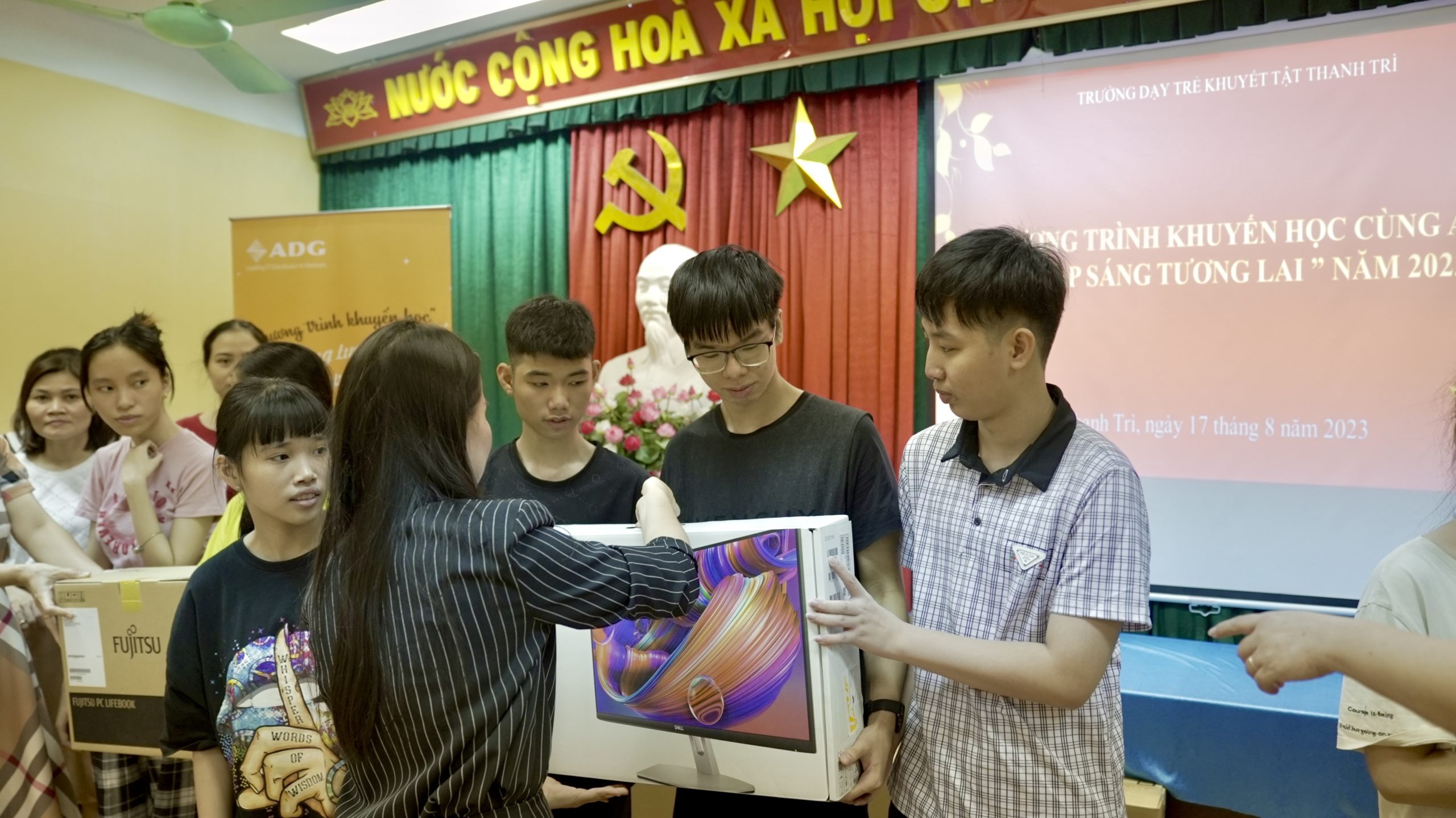Trên hành trình từng bước trở thành đối tác đồng hành lâu dài cùng khách hàng trên con đường chuyến đổi số, ADG luôn chung tay và duy trì thường niên các hoạt động cộng đồng, đề cao trách nhiệm xã hội của mình. Mở đầu cuộc hành trình là trường Dạy Trẻ Khuyết Tật Thanh Trì. Trường hiện có 104 học sinh và 28 cán bộ, giáo viên, nhân viên. Học sinh là trẻ bị khiếm khuyết về cơ thể, trong đó chủ yếu là các em bị câm điếc và khiếm thị, thiểu năng trí tuệ. Đặc biệt, nhà trường hiện tại chưa có phòng tin học, đây là trở ngại rất lớn đối với các giáo viên và các em học sinh trong quá trình học tập và giảng dạy.