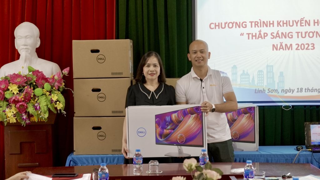 Phát biểu tại buổi trao quà, ông Nguyễn Tiến Dũng – Trưởng nhóm sản phẩm Dell SnS, đại diện công ty ADG đã bày tỏ sự ngưỡng mộ, trân trọng sự cố gắng của tập thể cán bộ, giáo viên, nhân viên nhà trường, trong những năm qua đã không ngừng nỗ lực, tâm huyết với sự nghiệp giáo dục, dạy dỗ các em học sinh khuyết tật; đồng thời, mong muốn các em học sinh cố gắng học tập thật tốt, ngoan, lễ phép để không phụ lòng gia đình và thầy cô. Chương trình “Thắp sáng tương lai” không chỉ là việc trao quà, mà còn là thông điệp về tương lai, về việc hướng dẫn và khơi dậy niềm tin cho các thế hệ trẻ. Nó là một phần của sự nỗ lực của cộng đồng, từng bước đưa các em học sinh nghèo vươn lên trong cuộc đua phát triển toàn cầu.