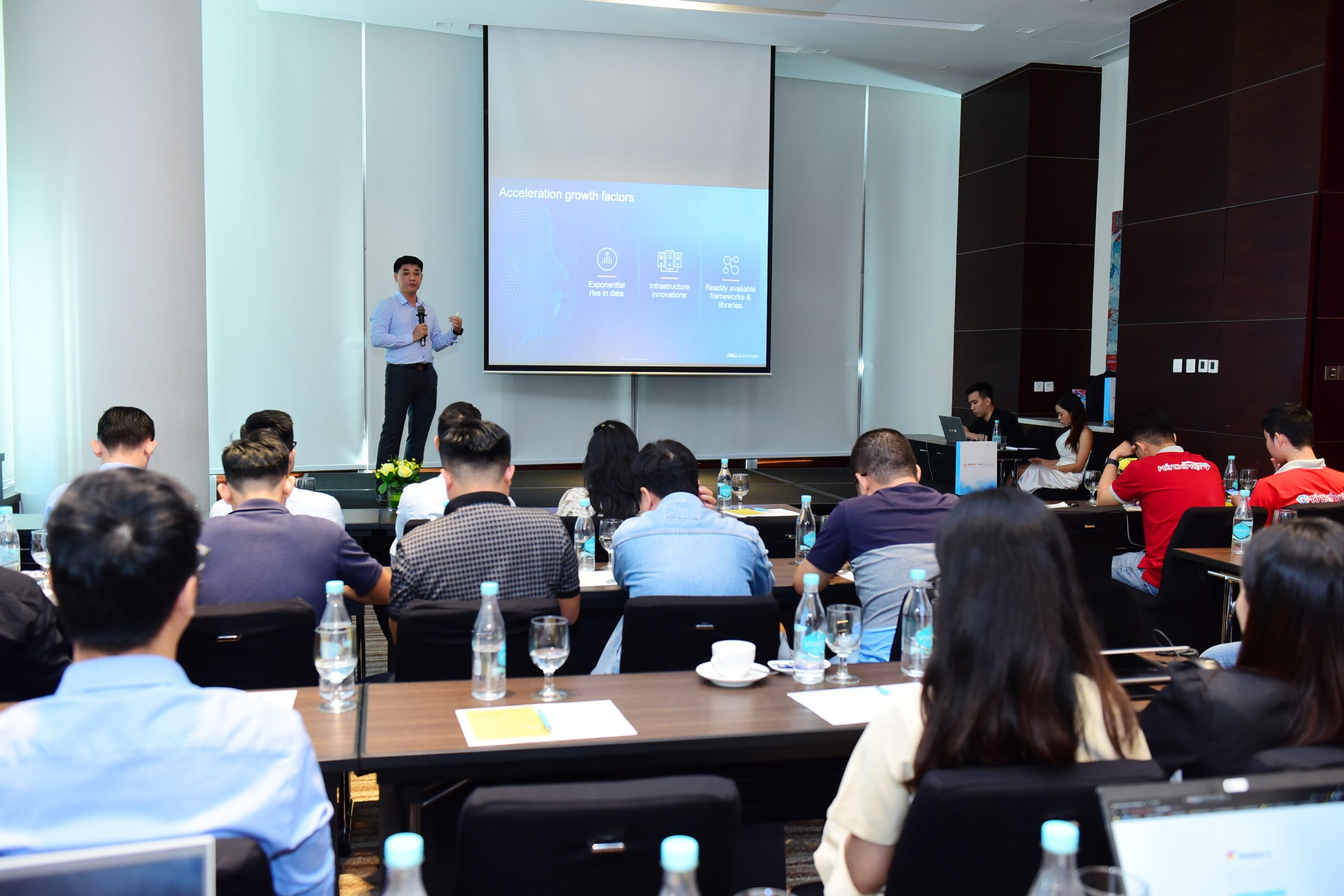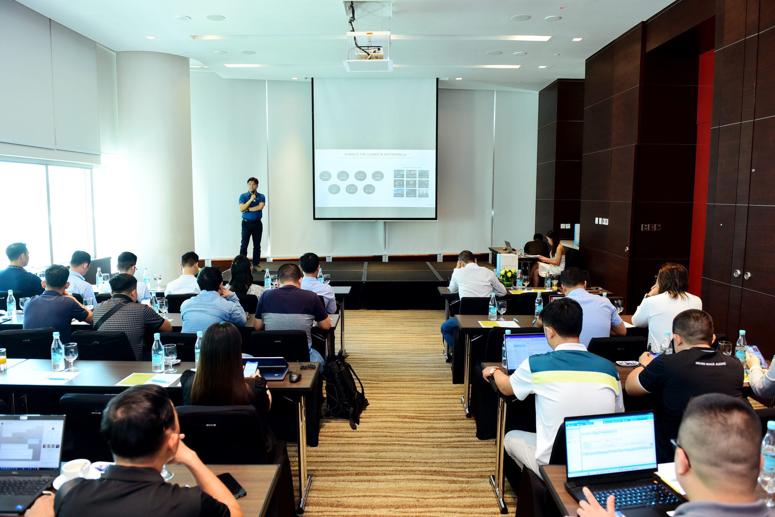 Phiên hội thảo đầu tiên về AI với phần trình bày của anh Nguyễn Tiến Dũng – NVIDIA Product Manager của ADG đã vẽ nên bức tranh toàn diện, giúp các khách mời nhận thức rõ những đặc trưng chủ yếu của trí tuệ nhân tạo và hiểu về các giải pháp giúp phát triển AI. Việc sáng tạo ra AI – trí tuệ nhân tạo là một bước nhảy vọt có tính đột phá về công nghệ, được coi là “điểm kỳ dị trong tiến trình công nghệ”, ở đó, nhân loại đã chia sẻ hành trình sống và suy nghĩ của mình với một đối tượng không phải con người nhưng lại có khả năng giải quyết vấn đề, học hỏi và thực hiện các hành động hiệu quả như con người trong các môi trường khác nhau.