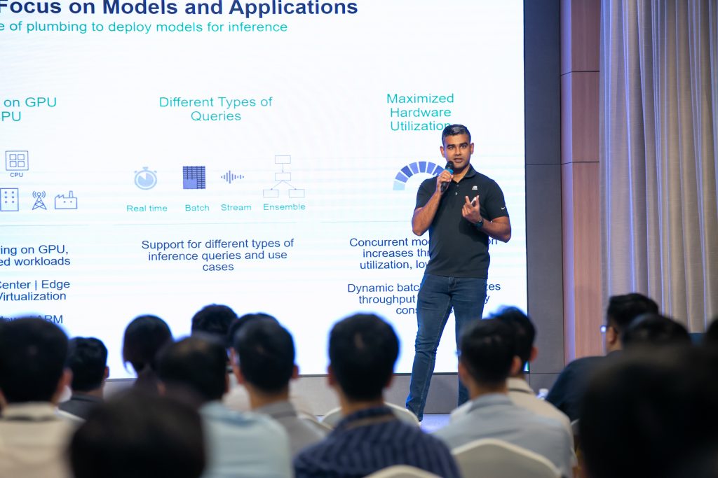 Phát biểu khai mạc tại sự kiện, Ông Vũ Cường – Giám đốc phụ trách khối KH Doanh nghiệp NVIDIA tại Vietnam chia sẻ: “Chúng tôi rất vinh dự vì sự kiện đã thu hút nhiều sự quan tâm đặc biệt từ cộng đồng phát triển AI tại Việt Nam. Điều này chứng minh sự cần thiết và quan trọng của việc chia sẻ kiến thức, kỹ năng và các xu hướng mới nhất trong lĩnh vực trí tuệ nhân tạo.” Ông Vũ Cường cũng bày tỏ niềm tin rằng sự kiện này không chỉ là nơi để học hỏi mà còn là cơ hội để cộng đồng mở rộng mạng lưới quan hệ nghề nghiệp và tạo ra những dự án hợp tác tiềm năng. “Chúng tôi tin rằng sự kiện này sẽ là động lực mạnh mẽ cho sự phát triển của cộng đồng phát triển AI tại Việt Nam, đồng thời là cơ hội để NVIDIA cùng đối tác như ADG gắn kết vững chắc hơn với thị trường đầy tiềm năng này.”
