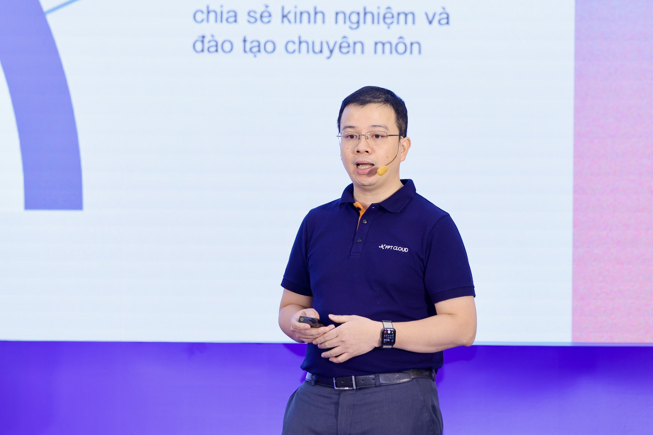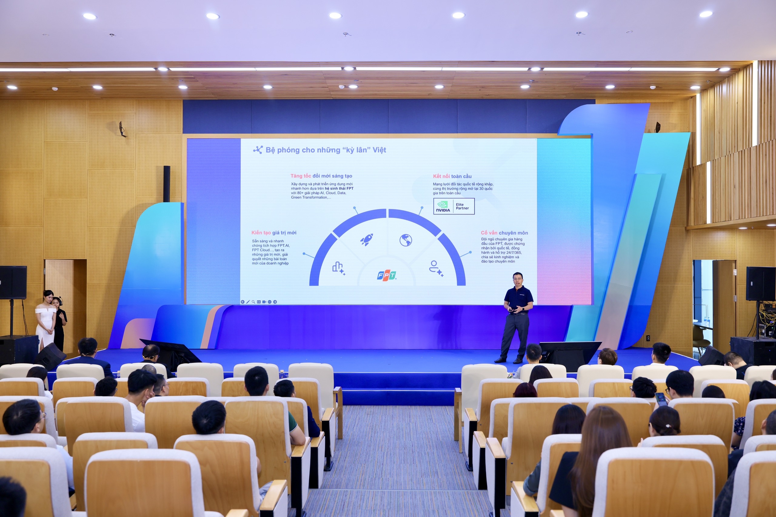 Ông Nguyễn Ngọc Minh – Executive Vice President, FPT Smart Cloud. Đại diện FPT đã giới thiệu giải pháp FPT Smart Cloud, nền tảng đám mây toàn diện, cung cấp các dịch vụ AI và Cloud mạnh mẽ, hỗ trợ đắc lực cho hành trình khởi nghiệp của các startup Việt Nam.