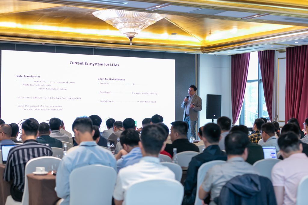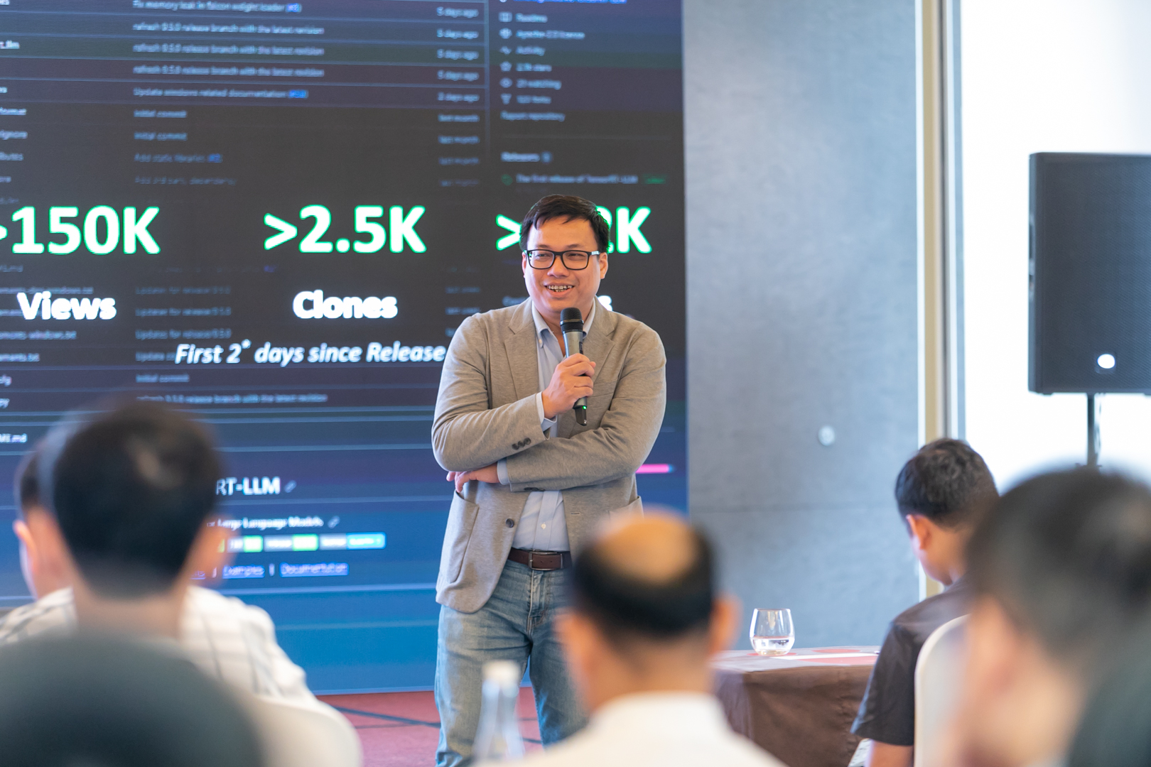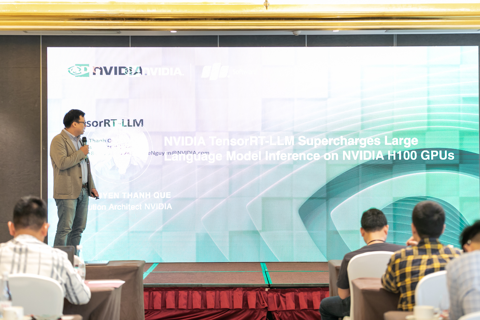 Phiên hội thảo thứ 2 của sự kiện với chủ đề NVIDIA TensorRT-LLM Supercharges Large Language Model Inference on NVIDIA H100 GPUs của Ông Nguyễn Thành Quế, Solution Architect của NVIDIA đã đi sâu vào kiến trúc và hệ thống phân cấp của H100, đồng thời khám phá một số ứng dụng thú vị mà GPU này là lý tưởng. Cho dù bạn đang làm việc với các mô hình AI phức tạp hay yêu cầu điện toán hiệu năng cao cho nghiên cứu khoa học, GPU H100 là giải pháp mang tính thay đổi cuộc chơi, sẽ giúp bạn đạt được các mục tiêu nhanh hơn và hiệu quả hơn bao giờ hết.