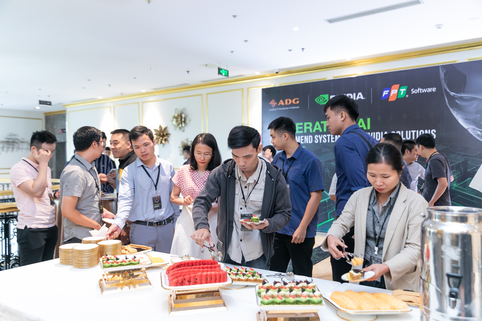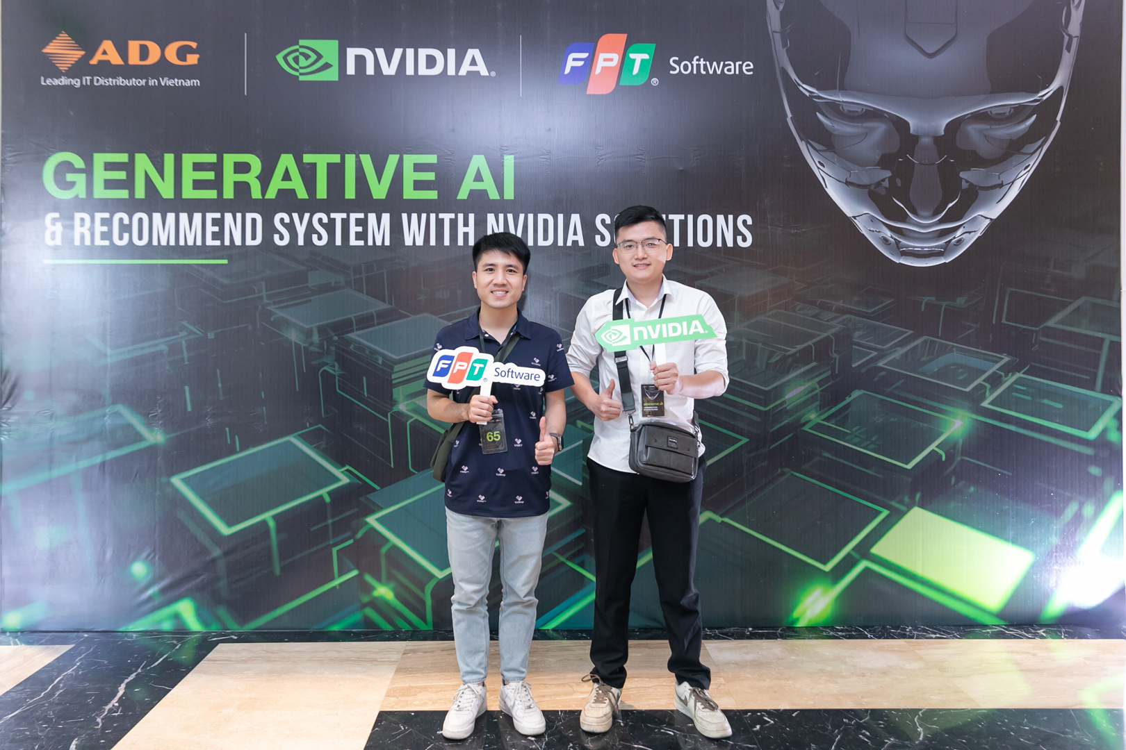 Sự kiện “Generative AI And Recommend System With NVIDIA Solutions” là không gian kết nối trao đổi kiến thức cũng như cơ hội hợp tác nghiên cứu, sáng tạo công nghệ và phát triển nguồn nhân lực cho đổi mới sáng tạo. Tại sự kiện, các diễn giả từ NVIDIA, FPT software và ADG đã giải đáp rất nhiều câu hỏi, thắc mắc từ các Khách mời tham dự. Kết thúc sự kiện, BTC còn có một phần Quay số may mắn vô cùng hấp dẫn để giành tặng cho các Khách hàng may mắn tham dự sự kiện. Hãy cùng chúng tôi xem lại một số hình ảnh từ sự kiện “Generative AI And Recommend System With NVIDIA Solutions”.