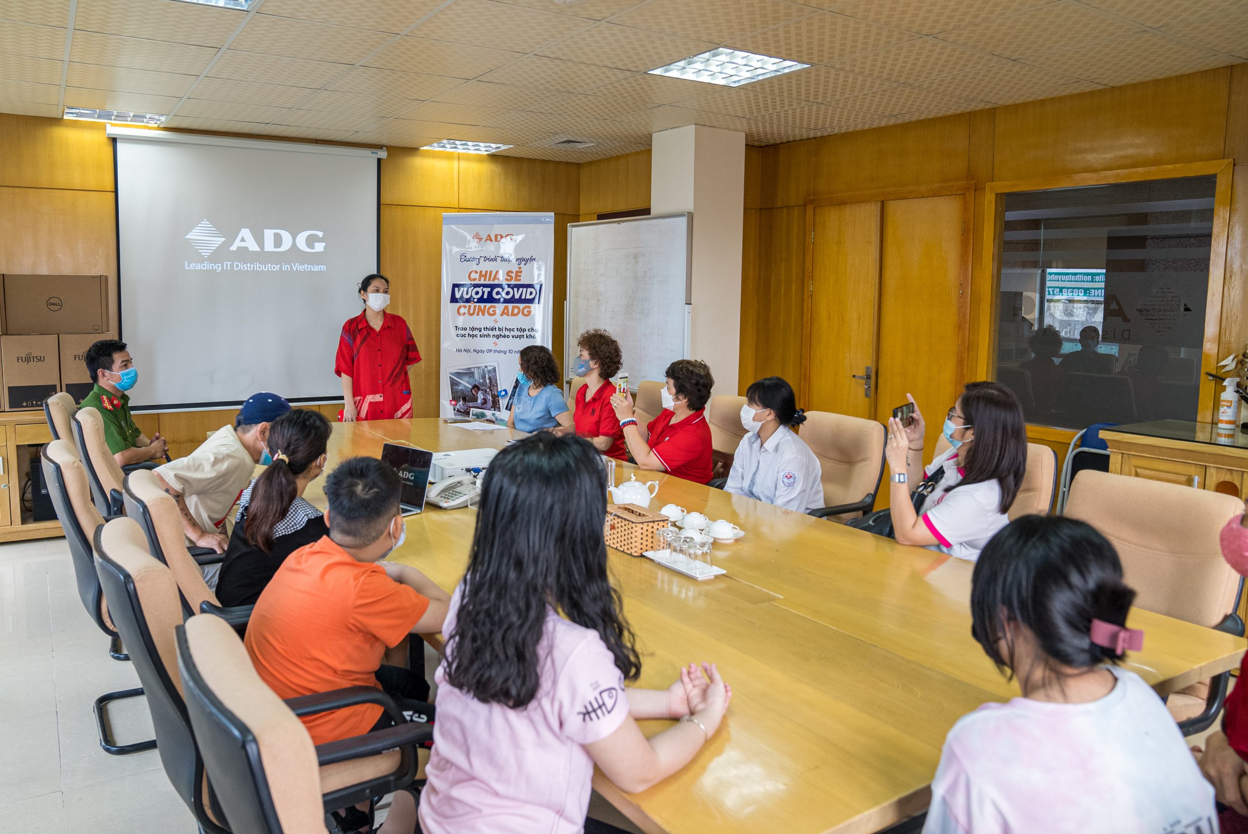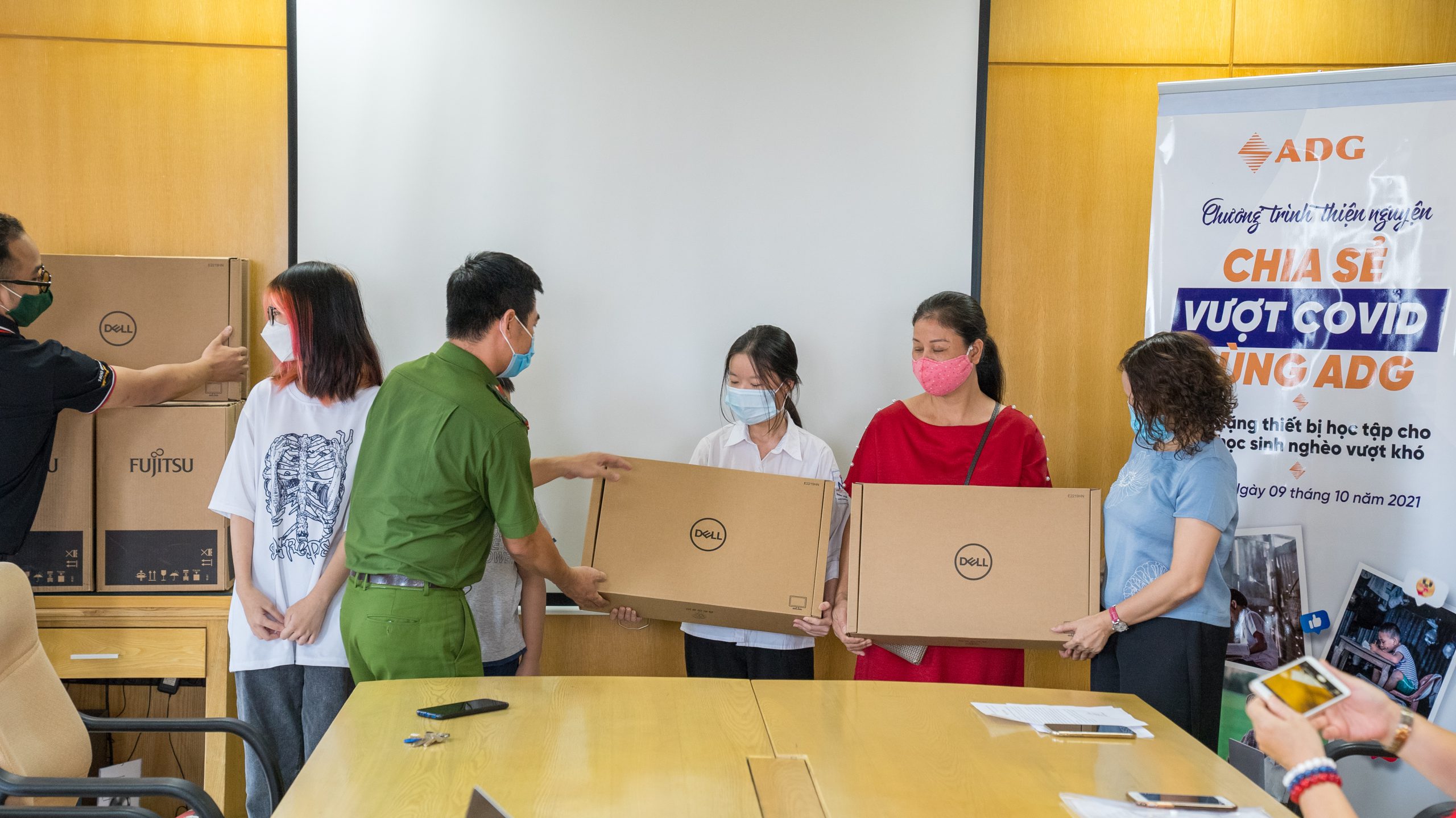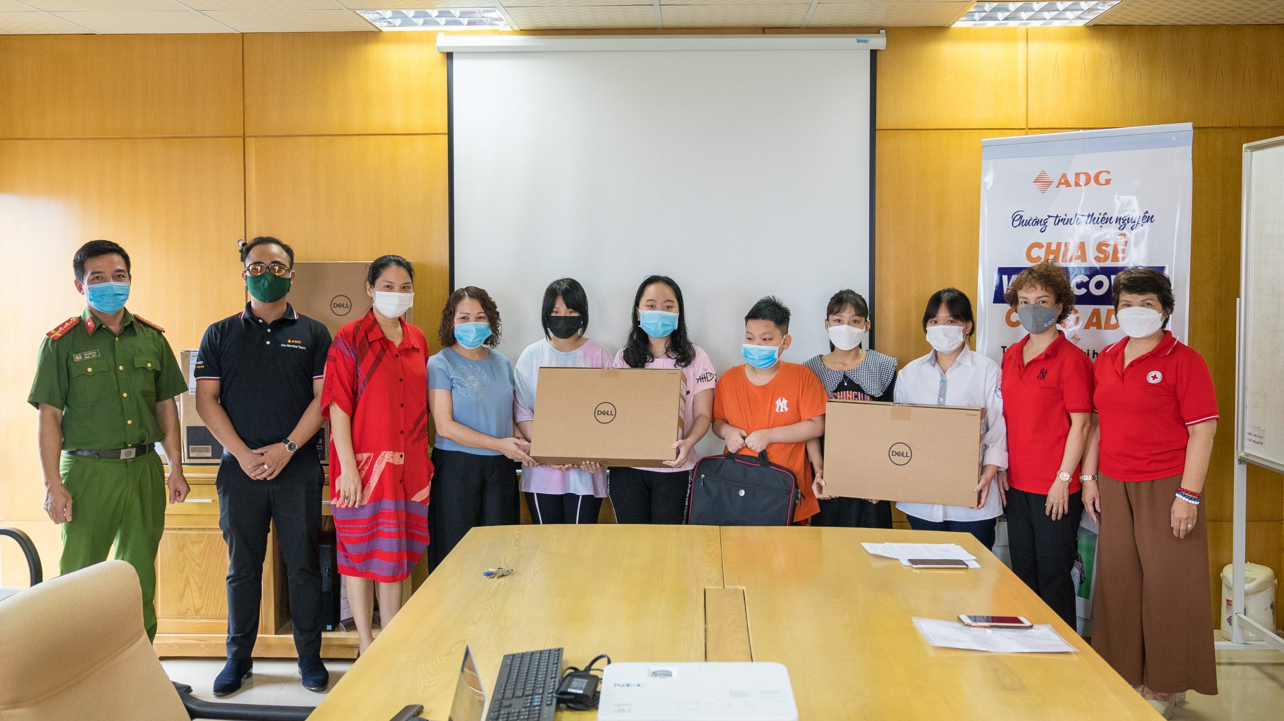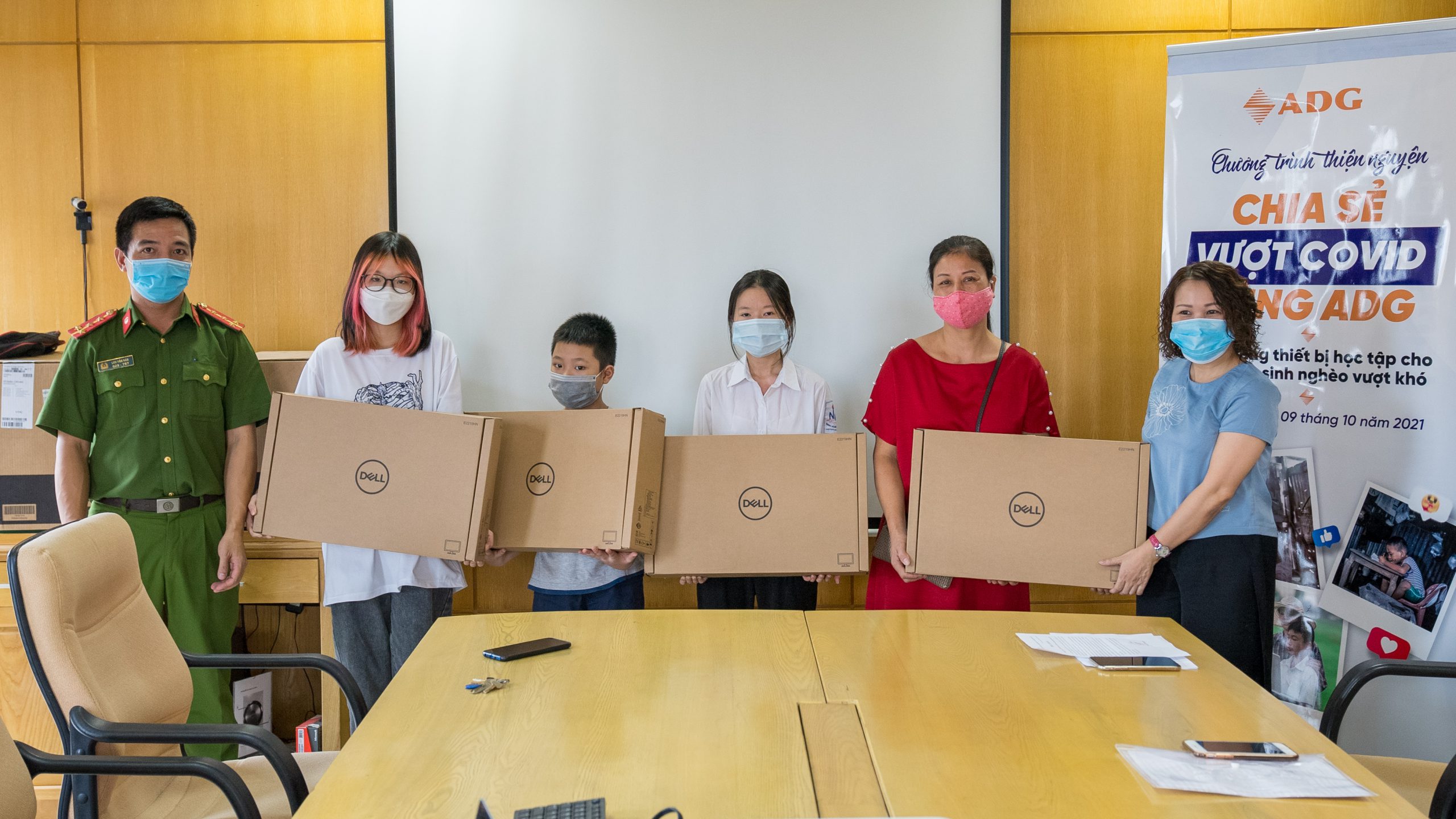 Xuất phát từ tấm lòng ái và mong muốn được hỗ trợ những em học sinh nghèo khó khăn thiết bị điện tử để dễ dàng theo học chương trình giáo dục online tại nhà trường. Ngày 09/10/2021, dưới sự chứng kiến và hỗ trợ của Hội chữ thập đỏ Quận Hoàn Kiếm và Công an Phường Nhân Chính, Q. Thanh Xuân, Công ty Cổ phần Đầu Tư và Phát Triển Công Nghệ Quốc Gia ADG đã trao tặng 10 suất quà là 10 bộ máy tính cho các em học sinh nghèo trên địa bàn Hà Nội. Lễ trao quà được tổ chức ấm cúng và an toàn, đảm bảo đúng nguyên tắc phòng chống dịch tại trụ sở công ty ADG, số 42+44 Nguỵ Như Kon Tum, Thanh Xuân, Hà Nội.