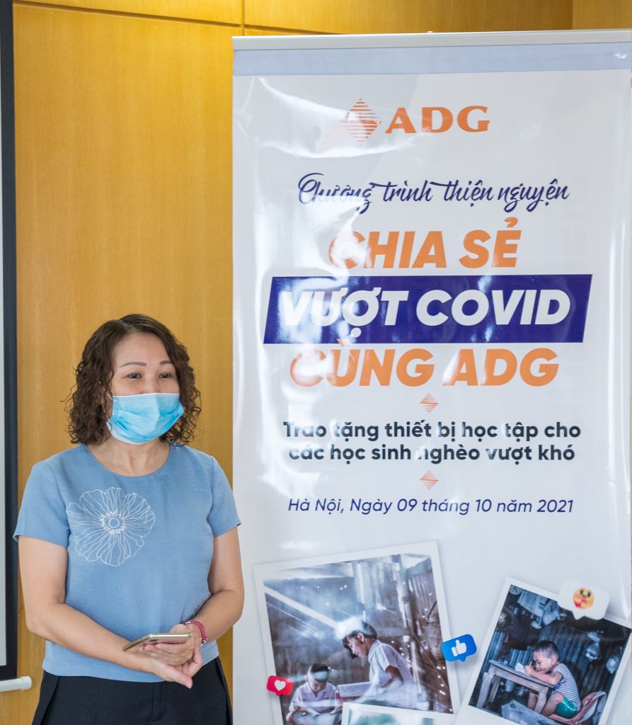Tại lễ trao quà, thay mặt BLĐ công ty ADG, bà Đỗ Thị Hải Hà – phó tổng GĐ công ty chia sẻ: “Bên cạnh hoạt động kinh doanh, những hoạt động hướng về công đồng và vì cộng đồng đã trở thành một trong những nét văn hóa được duy trì và phát huy mạnh mẽ tại ADG trong suốt những năm qua. Sau khi ghi nhận những trường hợp có hoàn cảnh gia đình khó khăn của các em nhỏ không có thiết bị học tập trực tuyến, BLĐ công ty luôn trăn trở và cảm thông trước tình cảnh đó, vì vậy công ty đã tổ chức CT thiện nguyện này với hy vọng sẽ được trao tận tay những chiếc máy tính này đến các em, giúp các em vững bước trên con đường tới trường, phát huy tinh thần hiếu học, cố gắng vươn lên vì một tương lai tươi sáng hơn”.