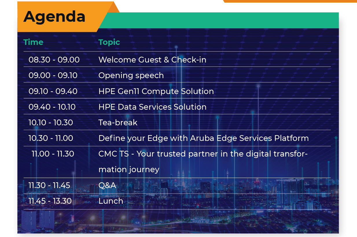 HCM – Vừa qua, CMC TS, ADG phối hợp cùng đối tác công nghệ HPE, Aruba tổ chức workshop “Smart Data Management & Unlimited Solution” góp phần chia sẻ những định hướng mới trong việc áp dụng các giải pháp công nghệ hiện đại trong việc chuyển đổi số doanh nghiệp ngành y tế.