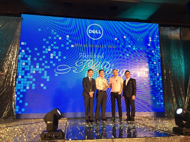 Ông Vũ Minh Tuấn (thứ 2 từ phải sang) – CEO của ADG nhận cup Nhà phân phối Dell xuất sắc nhất năm 2015