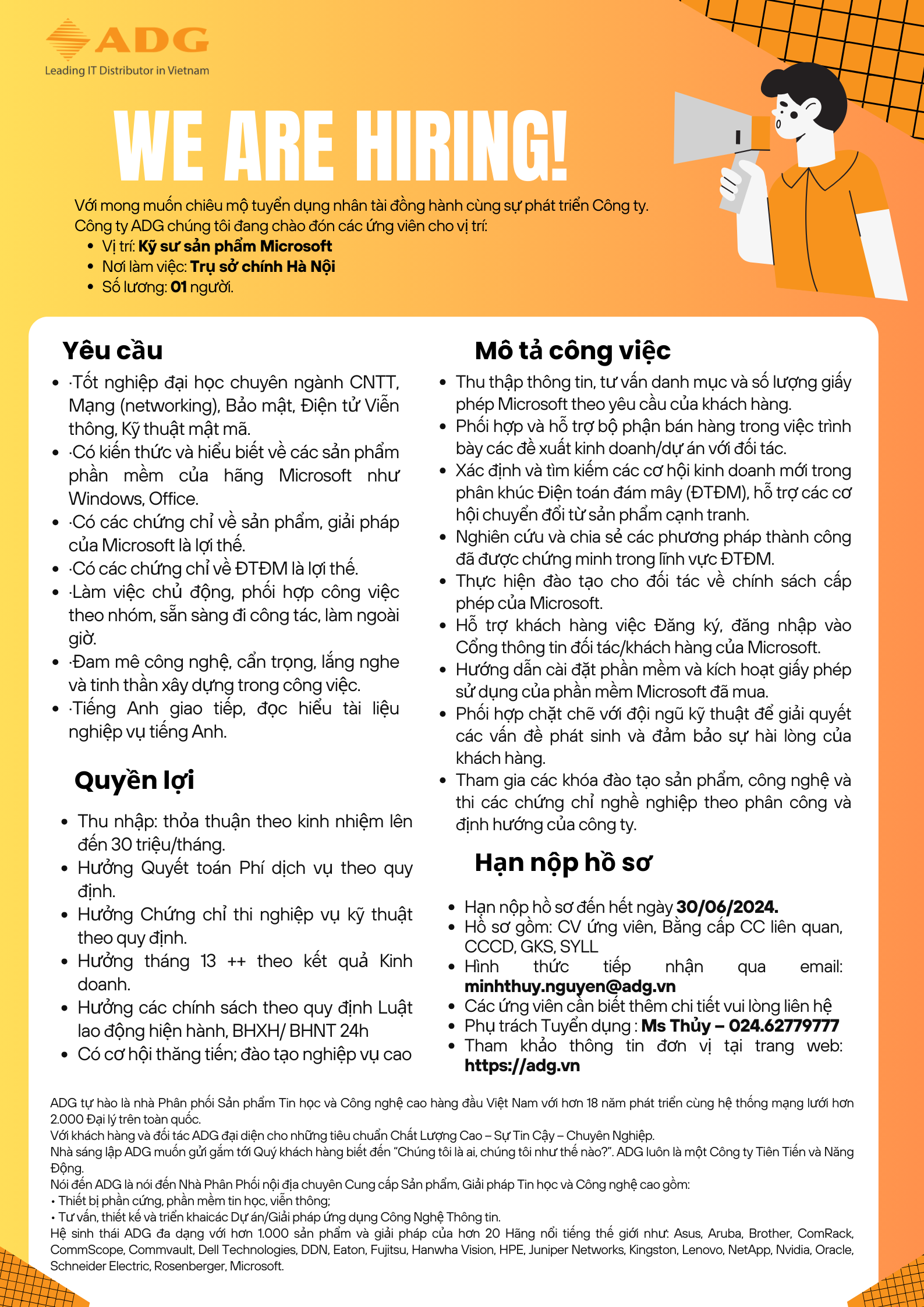 🌟 ADG TECHNOLOGY TUYỂN DỤNG – INFORMATION TECHNOLOGY INFRASTRUCTURE CONSULTANT 📍 Địa điểm làm việc: Văn phòng ADG Hà Nội…
