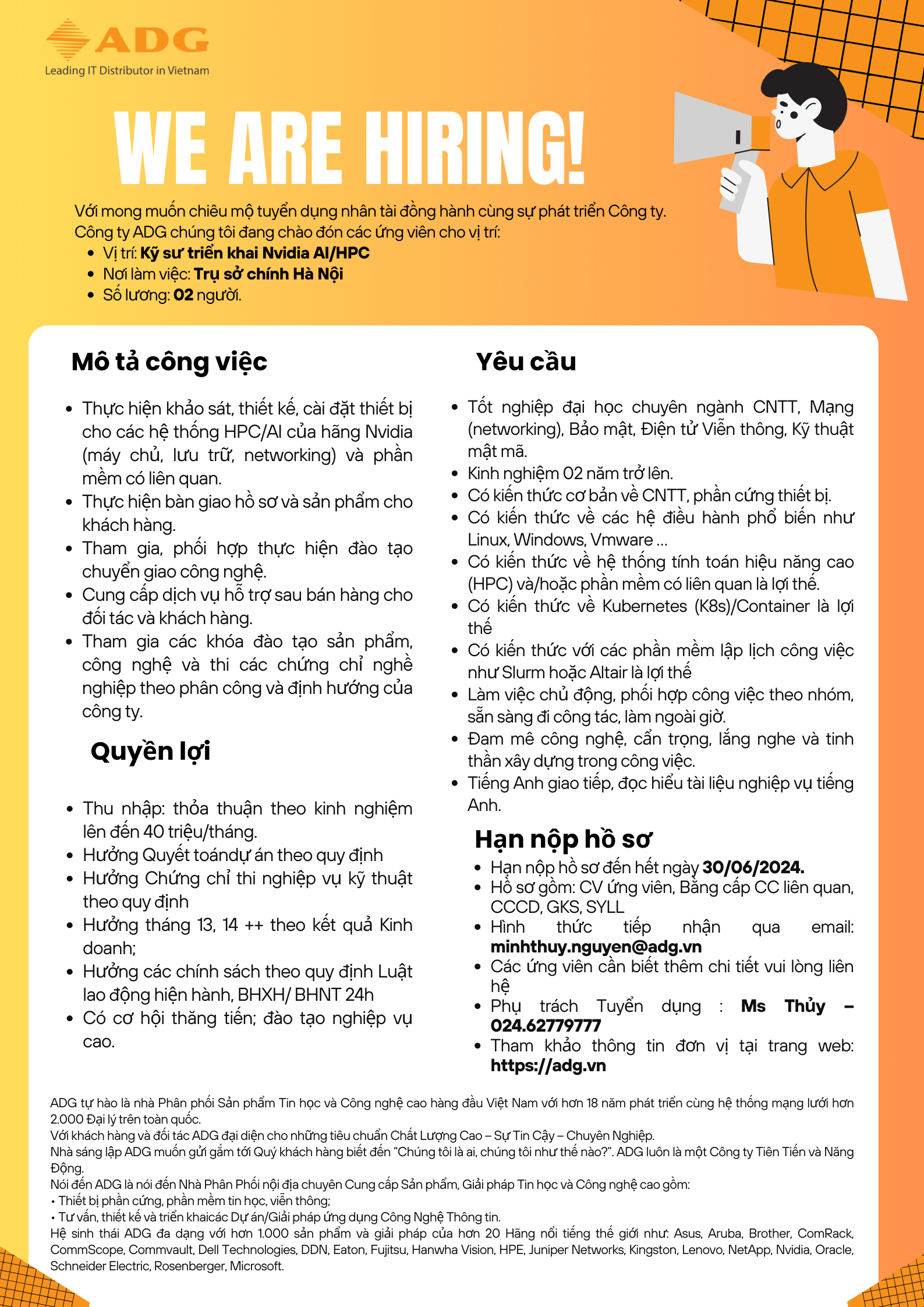 THÔNG BÁO TUYỂN DỤNG THÁNG 5: Kỹ sư triển khai NVIDIA AI/HPC