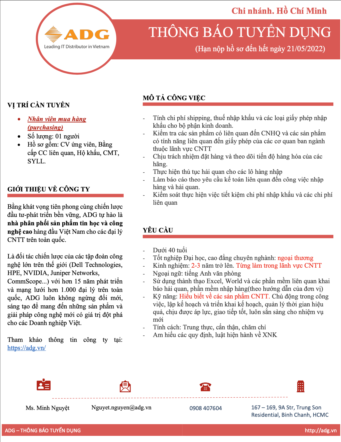 - Hình thức tiếp nhận qua email : nguyet.nguyen@adg.vn