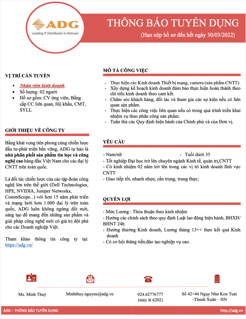 Hình thức tiếp nhận qua email : minhthuy.nguyen@adg.vn