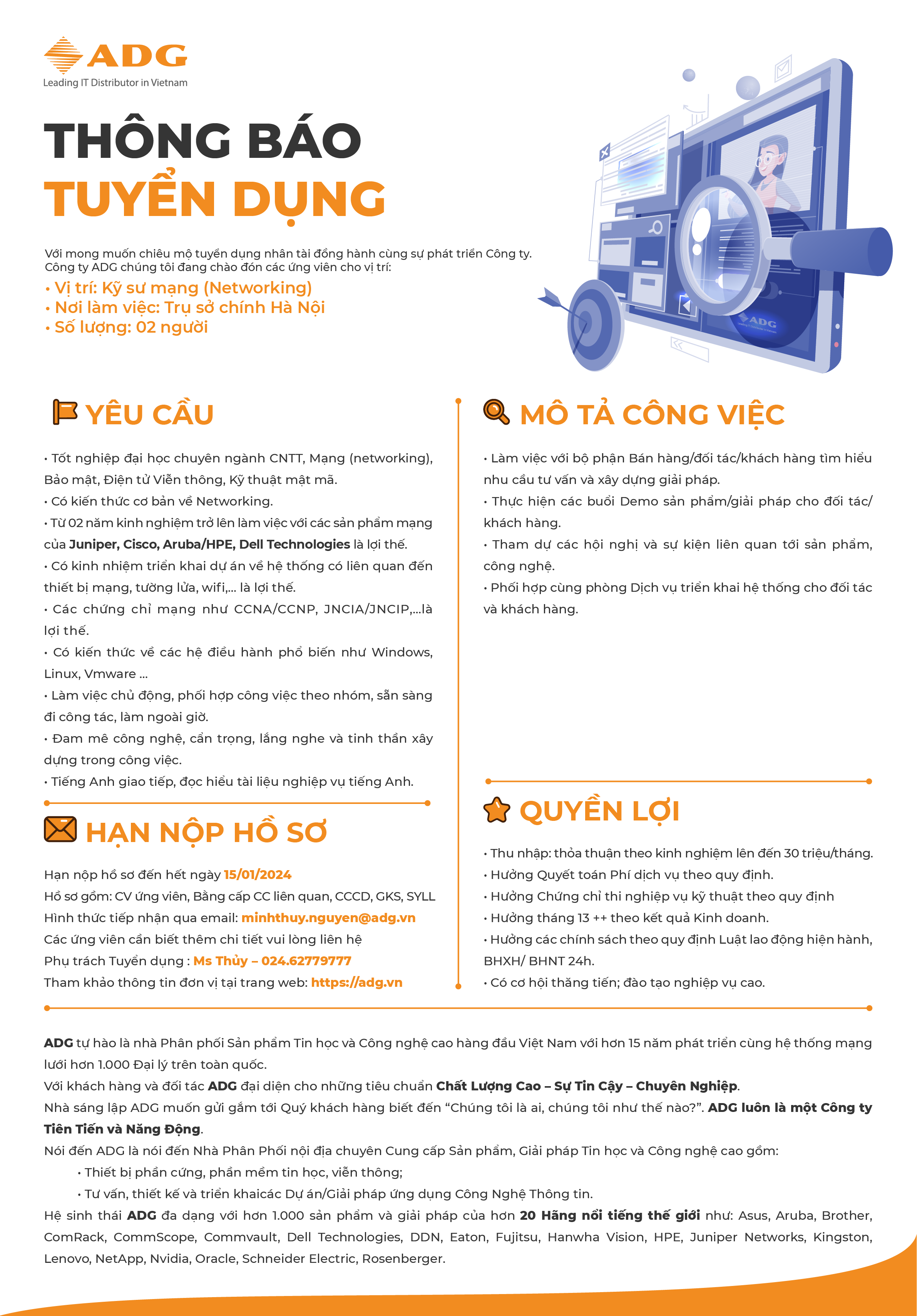 Thông báo tuyển dụng T1/2024: Kỹ sư mạng (Networking)