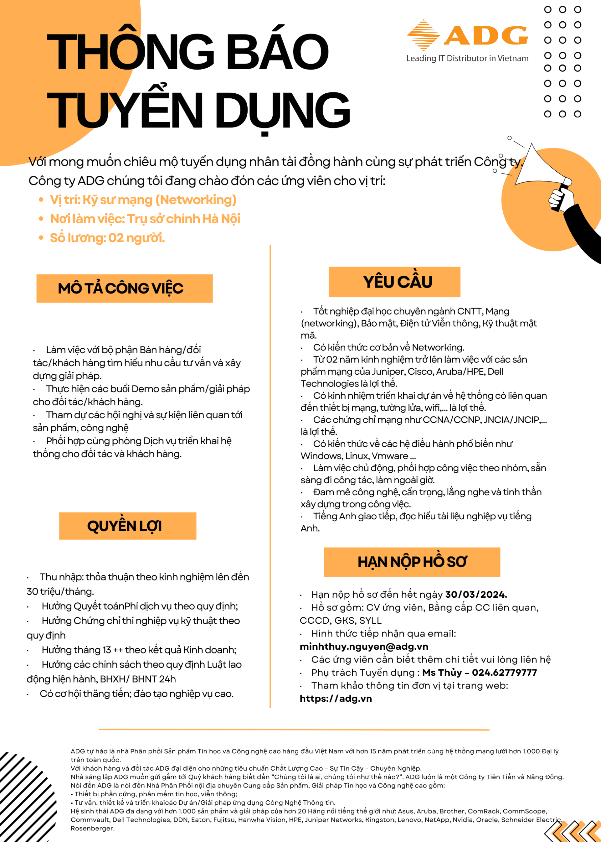 Thông báo tuyển dụng T3/2024: Kỹ Sư Mạng (Networking)