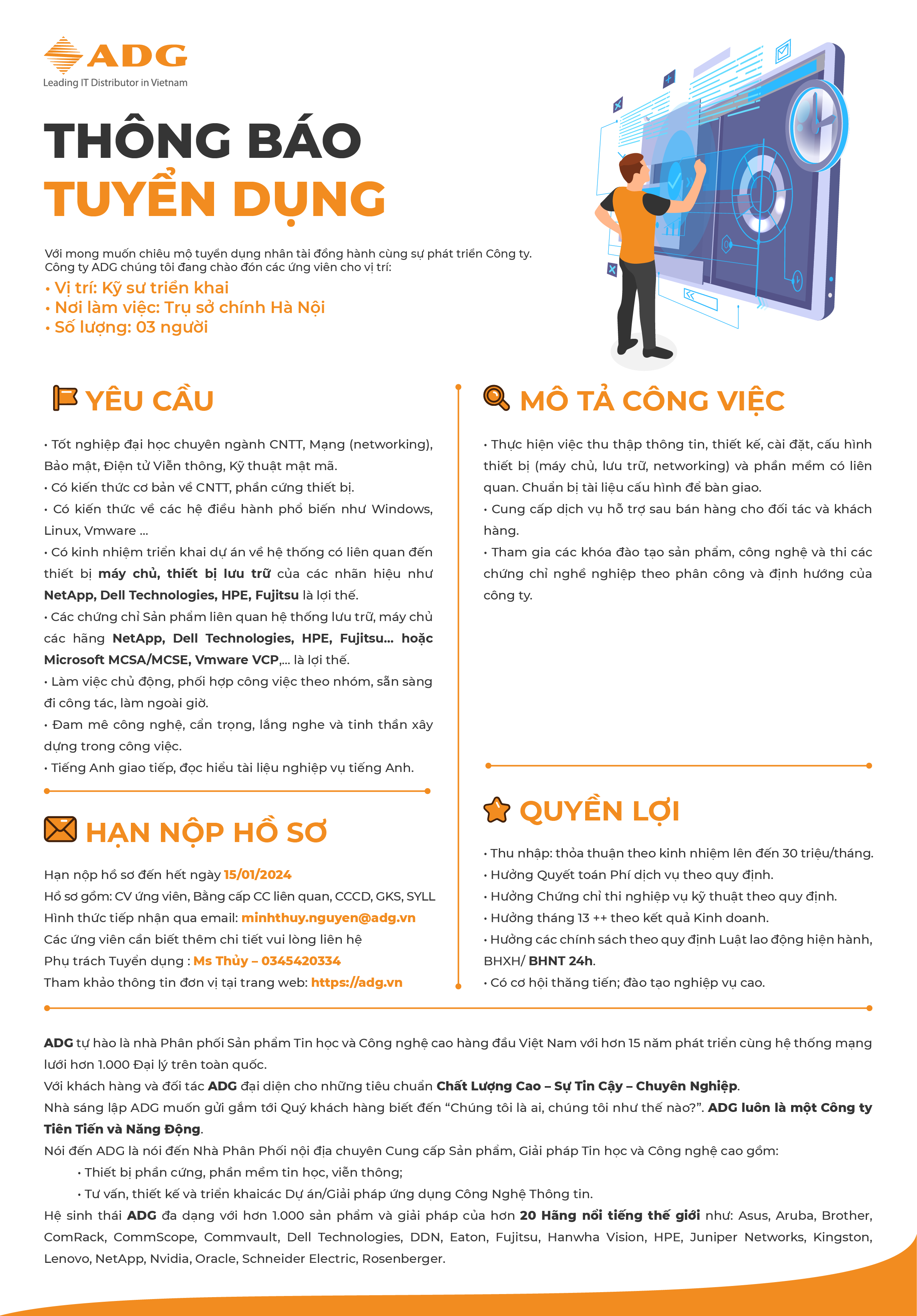 Thông báo tuyển dụng T1/2024: Kỹ sư triển khai