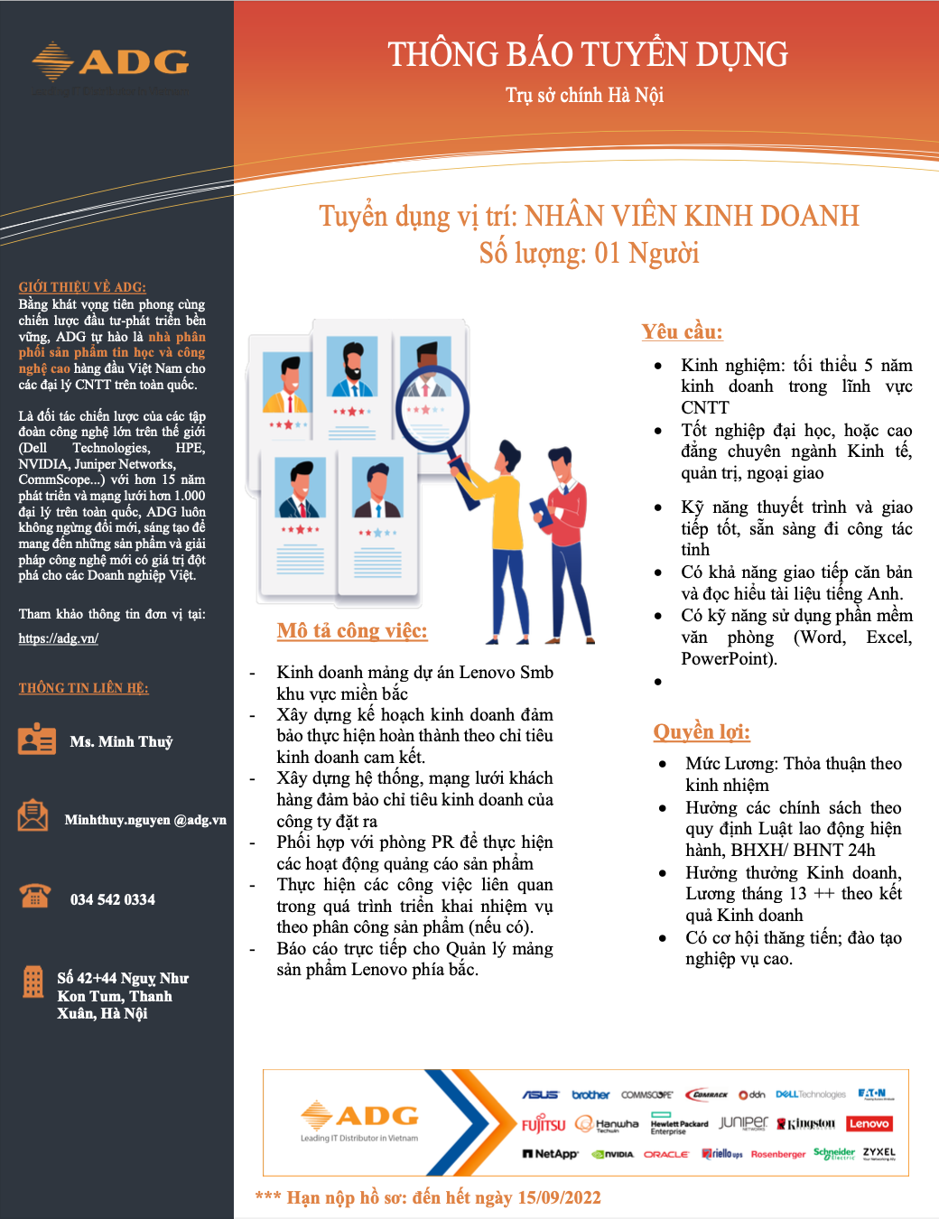 Phụ trách Tuyển dụng : Ms Minh Thuỷ – 034 542 0334