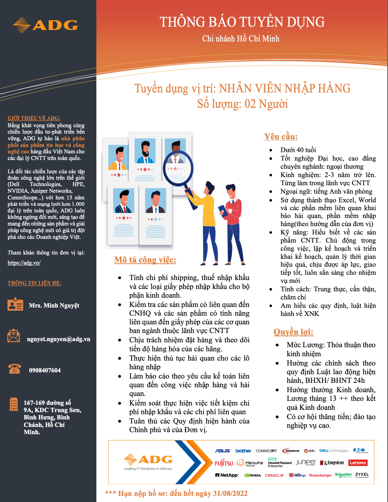 Phụ trách Tuyển dụng : Ms Minh Nguyệt – 0908 407 604